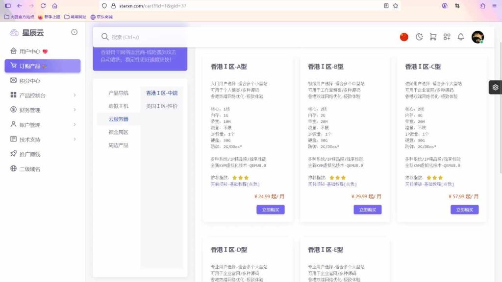 如果希望自己的网站更加流畅,虚拟主机肯定是不太够用的,这时我们就需要使用云服务器了,博主用的是星辰云官网的云服务器,因为博主觉得这里的价格比较美丽,哈哈。