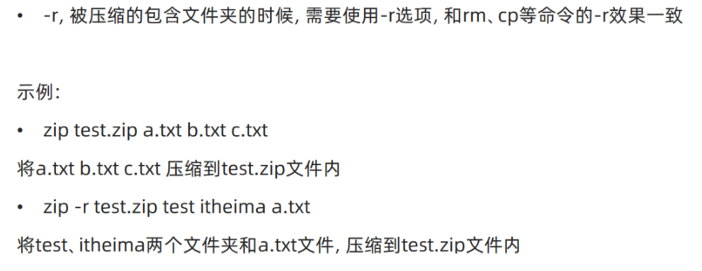 - unzip test.zip -d /home/itheima,将test.zip解压到指定文件夹内