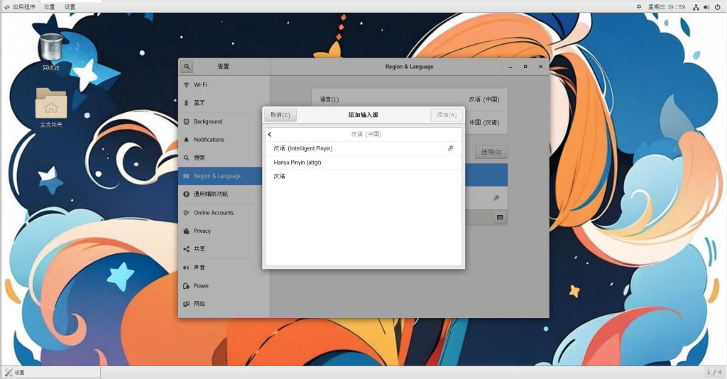 单击加号,然后找到中文双击,弹出如下页面,然后添加汉语(Intelligent Pinyin)